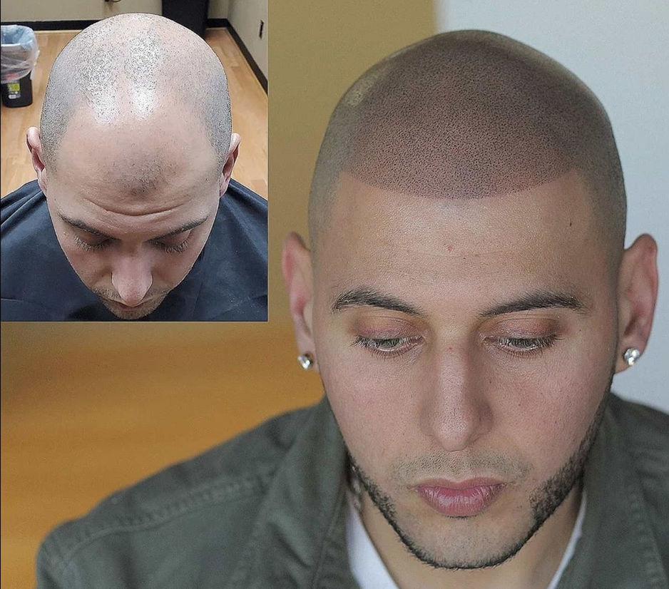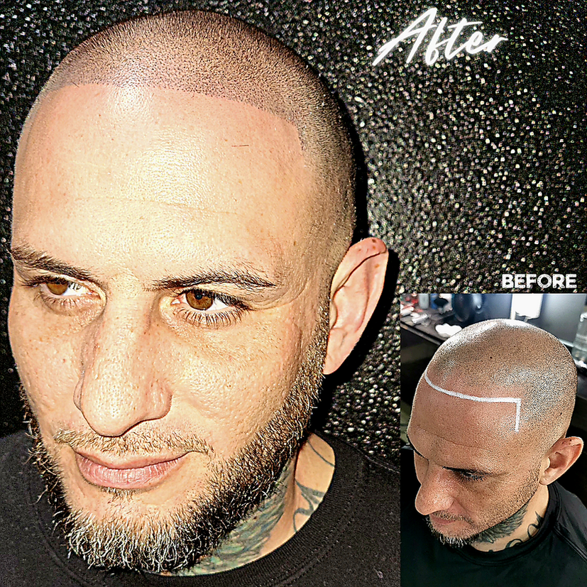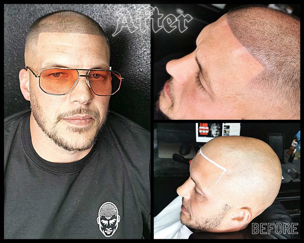 SMP by SEAN.INKS can be performed on all skin types and colours. In contrast to other tattoos it's not painful. The procedure does not penetrate the epidermal level of the skin as deeply. The inks (or pigments) used are less prone to color change over time. The advantages of this procedure is that the hairline can be adjusted and freshened up with relative ease.
